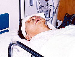 摂理信者からの襲撃を受け全身に怪我を負ったエクソダス前会長キム・ヨンス氏。暴行を受けた直後の写真(写真:ニュースアンドジョイ)