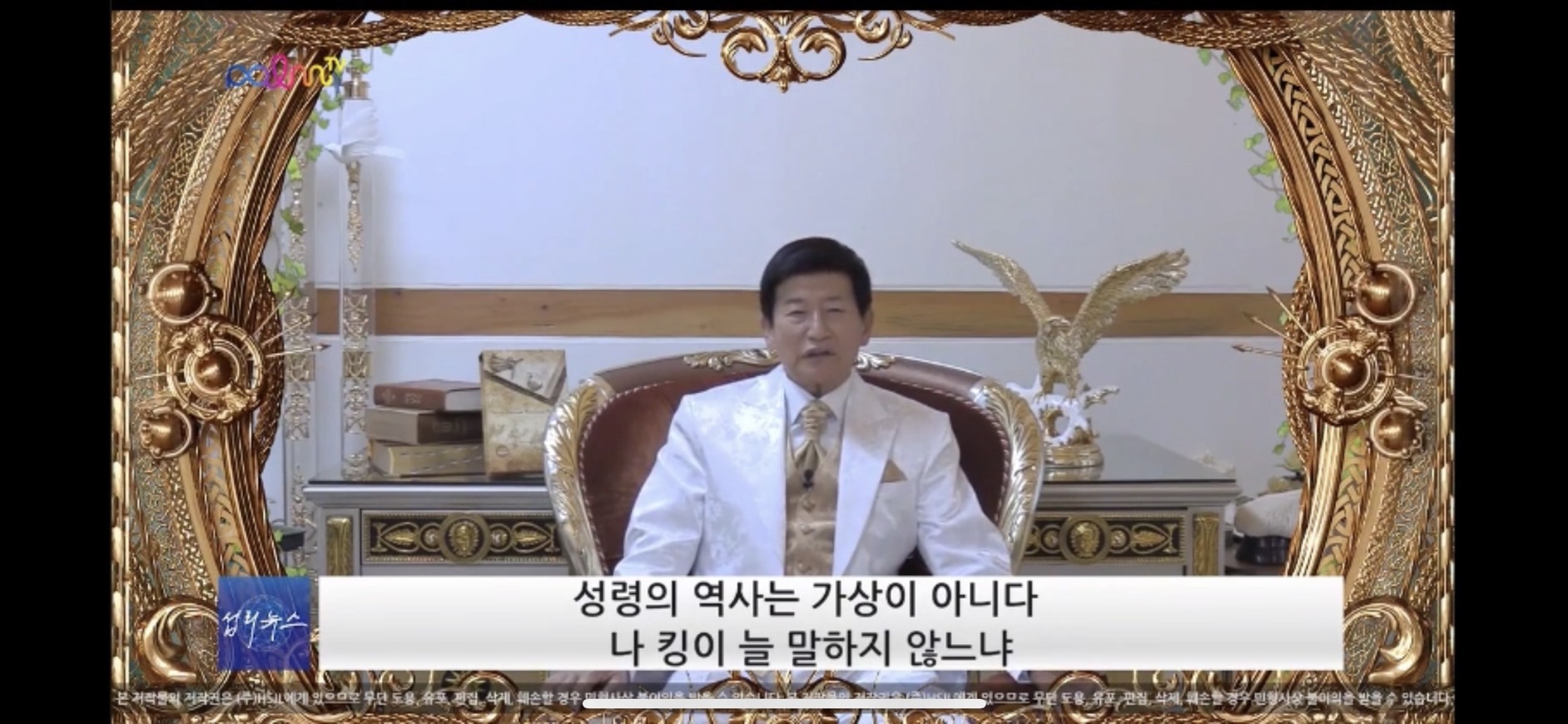 2020年1月19日の摂理内部動画。鄭氏は「聖霊の歴史は仮想ではない。私はキングとしていつも言っているはずだよ」と信者に対して述べている。